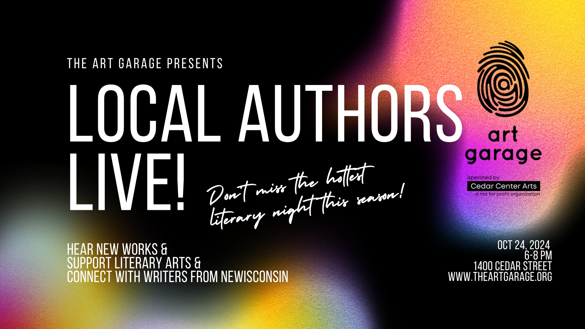 The hottest literary secret in Green Bay is the Art Garage’s new reading series! Join local authors in a cool industrial artsy space for a free evening of words, whispers, wisdom, and welcoming writers. Come for the talent, stay for the comfortable camaraderie and amazing art. Light complimentary beverages and snacks will be served.